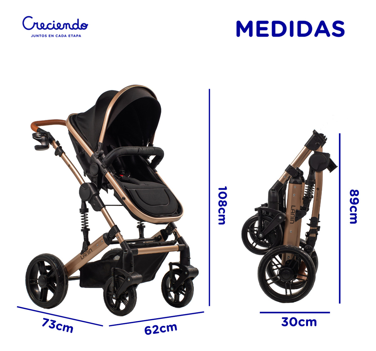 Cochecito de paseo travel system Mega Baby 3 en 1 Lanin Travel System negro con chasis color dorado